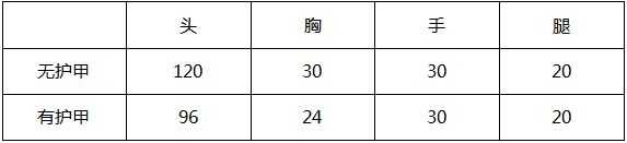 1、胸部伤害x4即为头部伤害,打中护甲的伤害须在此基础上另外x0.8 。