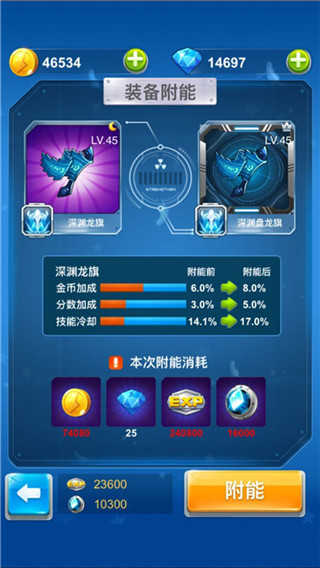 如此加强后,装备里像深渊套装,天空套装这样的人气套装战斗数值将再提高。又因装备附能的材料包括了能量点、钻石、金币、装备经验、原装备部件,原装备部件的消耗根据等级的不同,最高一次消耗4件原装备部件,因此想要进阶到最高等级也是比较难难的。但相对于升级进阶太阳套装的难度来说,月亮套装要容易一些,更容易先升到更高等级。对于起先就培养的是月亮套装装备的机友们来说,会有较多优势。但起先培养太阳的机友们也不用担心,太阳战机仍是现今《全民飞机大战》较强装备,即使没有升至最高等级也很强,并不逊色于高等级月亮装备。