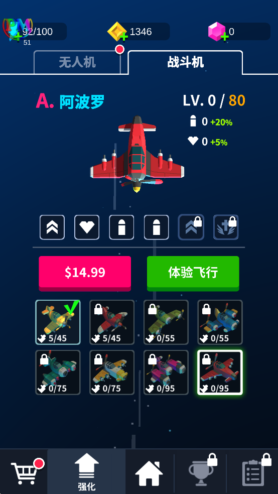 热火天空是一款飞行射击类手游,游戏画风唯美,拥有超多刺激关卡,动感的音乐再搭配上超强的打击手感,给玩家带来欢快刺激的游戏体验!热火天空游戏操作简单,玩家需要通过移动屏幕躲开敌机的炮弹,并用自己的炮弹去攻打敌方飞机,击败强力BOSS即可进入下一关。游戏内还有很多类型的战斗机,玩家可以将它们升级改造成威力更加强大的武器。