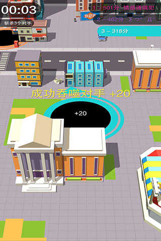 当然玩家自己在操纵黑洞吞噬东西时,对手玩家们也在这样做,游戏中竞争对手互相是可以吞并的,只要他的黑洞体积比你大就可以了,所以你要小心,吞食的时候还要注意对手