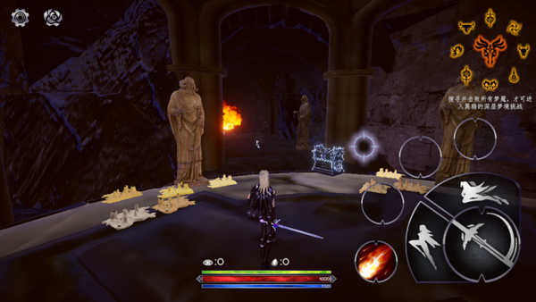 3、看完后即可进入游戏,游戏采用了经典的横版操作,屏幕左边控制移动,右边则是攻击、技能等键位;