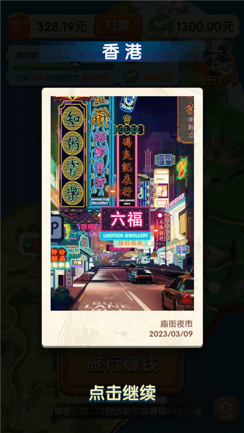 2、进入游戏之后就开始玩消除游戏,然后就可以获得经费买机票进行旅游,这个时候玩家可以选择“旅行赚钱”。