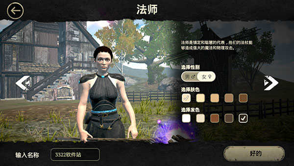 2、我们以法师为例,接着再设定性别、肤色、发色、昵称后,就可以开始冒险了。