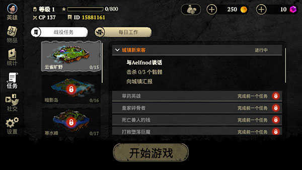 3、打开游戏任务界面,确定目标,再点击开始游戏,去尝试完成任务。