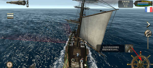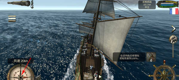 3、首先我们需要升起杨帆,滑动右方的帆船图标滑动到最上方,船只开始移动;