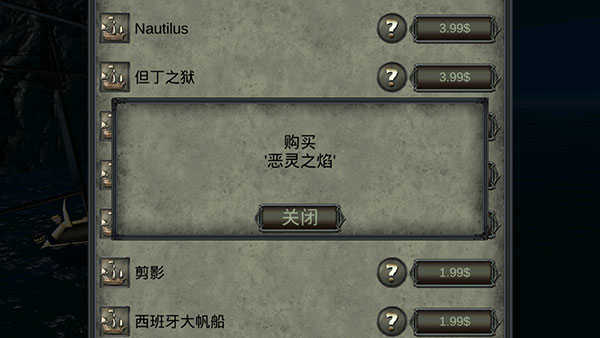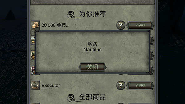 4、可以看到付费商店的商品列表的第5项就是潜艇【Nautilus】。