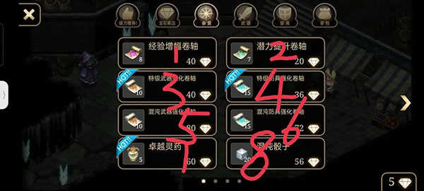此方法也可以用来卡艾诺迪亚4商城其他里的东西,如徽章,技能书等。例:想要的东西再第三个。先定位:一个买的基础包A,复制2个复制体a1,a2,保存退出重进。再用A再复制一个b1,此时不保存,a1+a2+b1=物品位置,定位完成,依次粉碎a1,a2,b1进入商店,点一下你要的,再进背包A就会变成对应物品。批量刷,回到上一步,b2,b3,b4,b5,b6还是粉碎a1,a2,b1,进入商店点一下你要的进背包,此时b2到b6+A都变成对应物品。