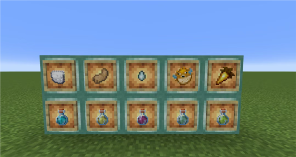 钓鱼竿:钓鱼竿的制作材料非常简单,只需要3根木棒以及2个蛛丝。用它可以获得各种鱼类、附魔书和其他杂物。