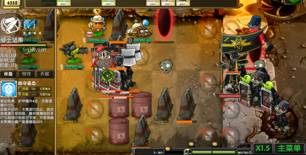 4、植物进化系统:豌豆射手、杨桃等有双路线进化,升级解锁新技能,大招可叠加释放。