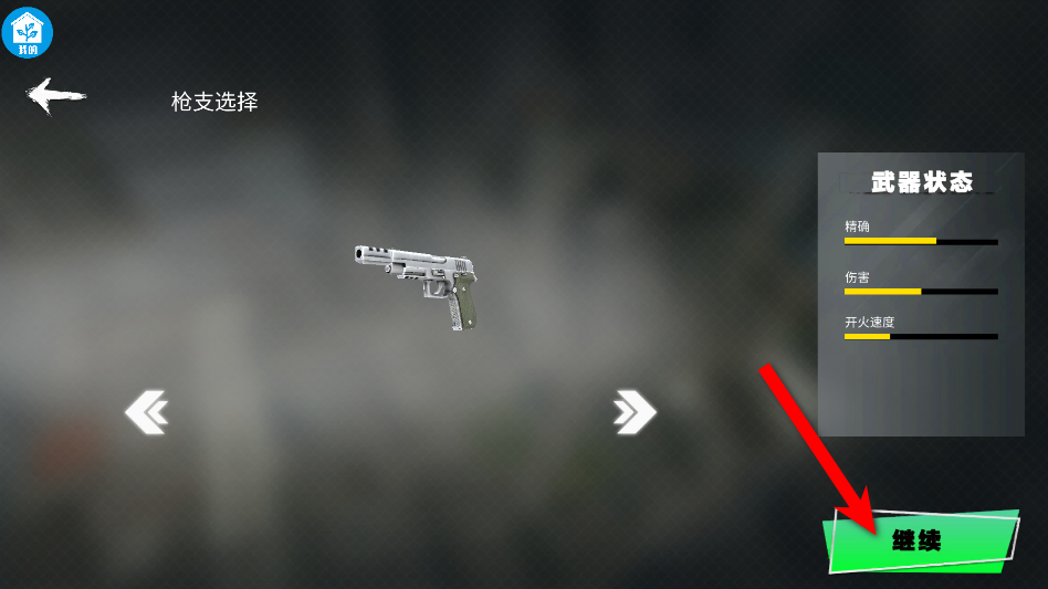 2、选择武器点击继续。