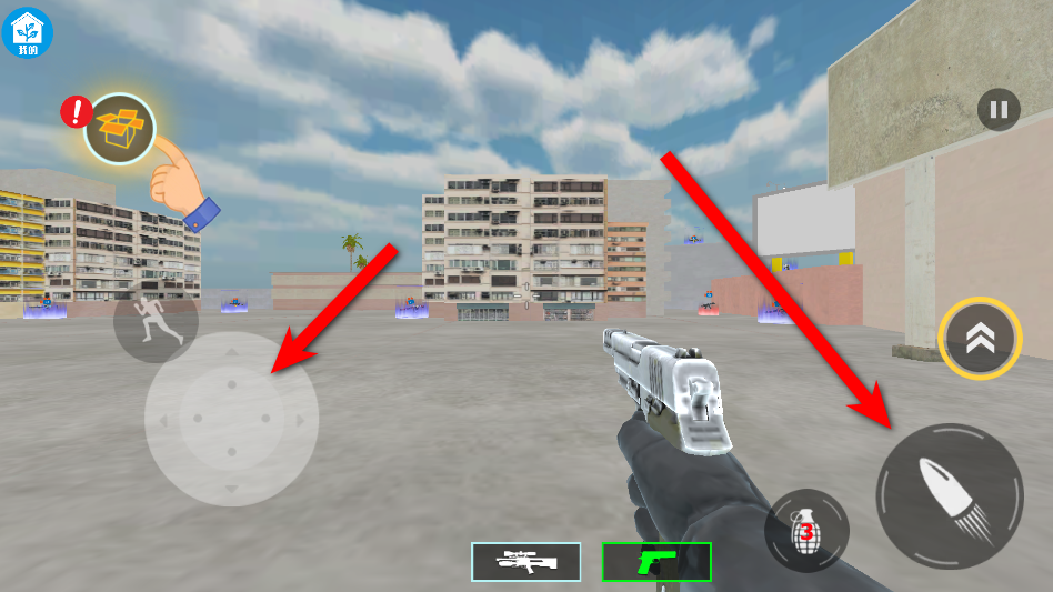 4、左下角可以进行角色移动,右下角可以进行射击。