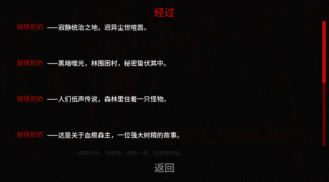 血根森主是一款以俄罗斯民俗传说为背景的心理恐怖视觉小说游戏,玩家将跟随主角阿列克谢重返被黑暗笼罩的童年村庄,在虚实交错的森林中探索真相,游戏通过非线性叙事与多结局设计,让玩家的每个选择深刻影响角色命运与故事走向,结合黑红色调的诡异画面与沉浸式音效,营造出步步惊心的恐怖氛围。血根森主游戏还融入了解密小游戏以增强沉浸感,而阿列克谢面对恐惧时的反应,无论是屈服还是斗争,这些都将随玩家的决定而变化。