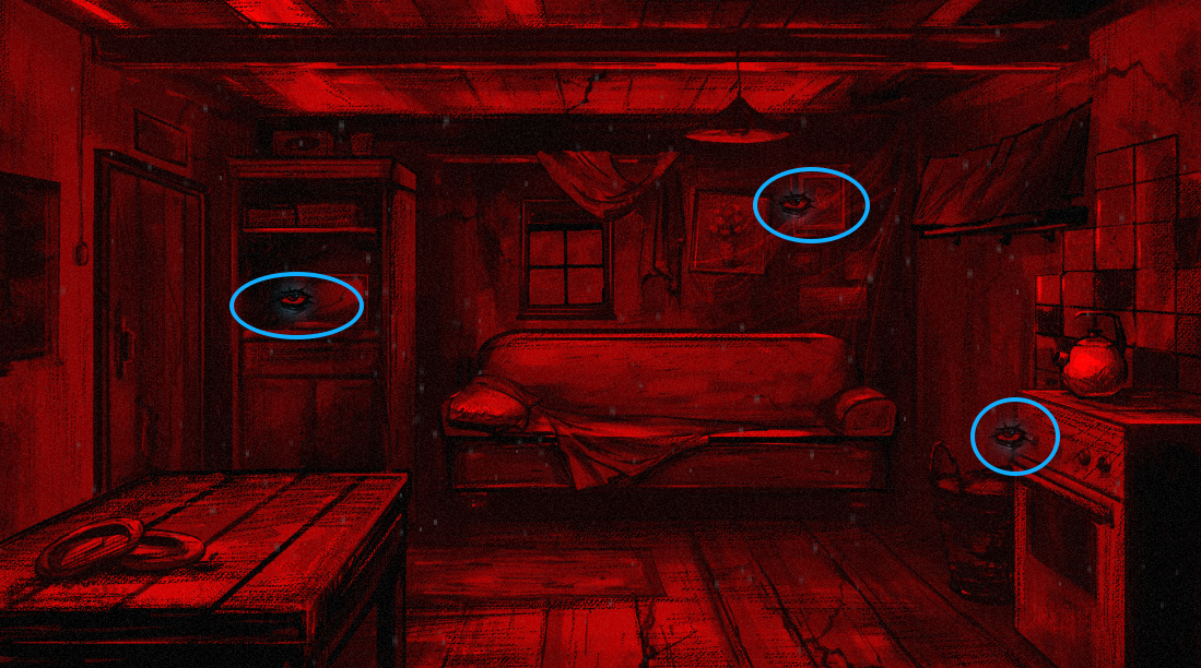 6、进入房子后,可以查看“红色眼睛”的特殊物品。
