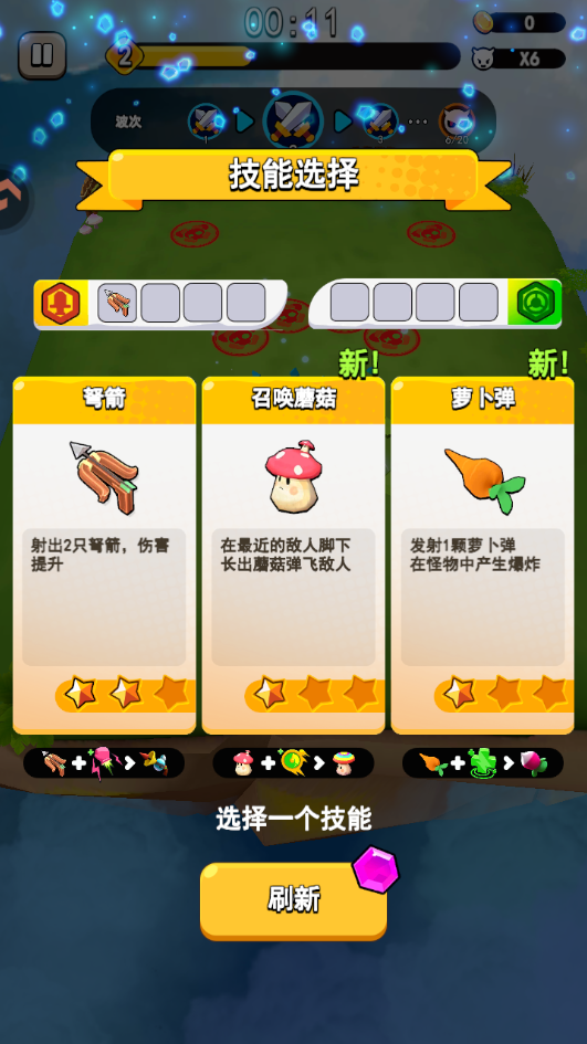 在战斗中你还会随机刷新出全新技能,比如减少攻击间隔、炸弹等等。