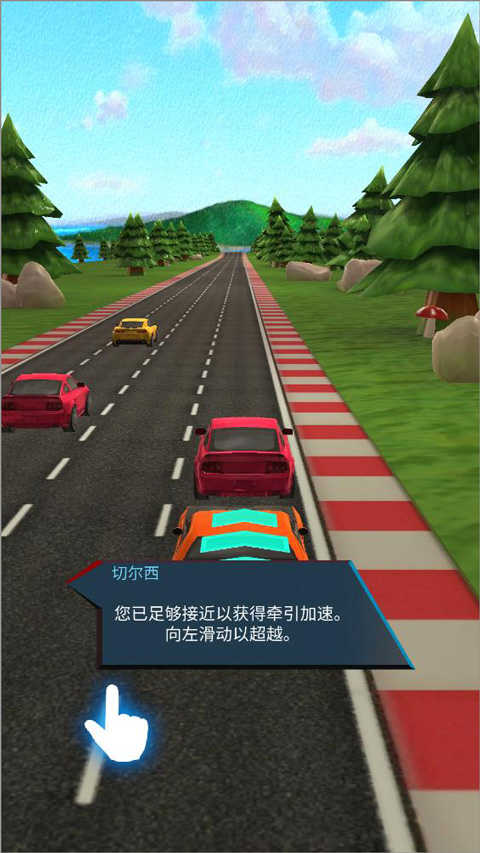 7、当有人阻碍时可以向右绕开他们,当足够接近其他赛车时可以获得牵引加速,玩家控制滑动超越其他车辆赢得胜利,胜利之后玩家还可以获得金币和钻石奖励。