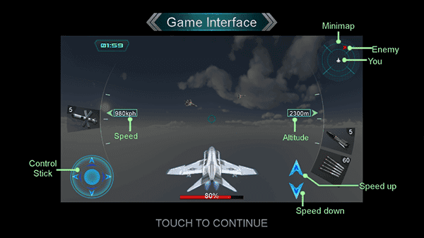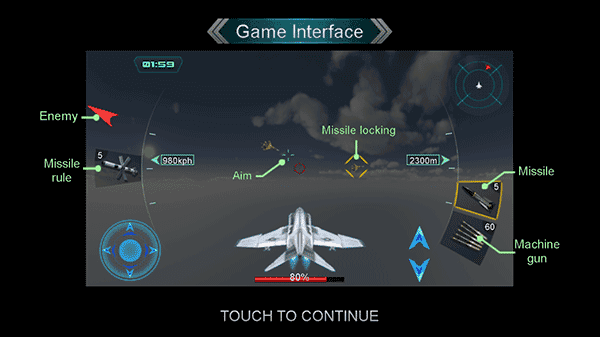 全体人员留意!三点钟方位战机来袭!防护门已打开,航行限定已消除,兵士,提前准备进攻!做为一个刚添加航空兵的兵士,你的每日任务便是安全驾驶著战斗机击毁战机,击毁敌舰,摧毁敌军的一切工程建筑,最后获得战争的获胜!