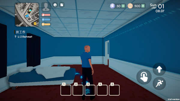 失业生活模拟器是一款随时随地自由虚拟人生的游戏,在这个独特的像素世界中,你将扮演一个正面临失业挑战的角色,开始一段充满冒险与机遇的旅程,搭配上精致的场景建模以及超高自由度的玩法,玩家还需要做好自己的理财规划,用来支付房租、购买食物和购买生活必需品。不断地发展自己的事业,取得更高的成功。除了寻找工作,在失业生活模拟器游戏中,玩家还可以通过打发时间来提高技能水平,例如学习语言、练习乐器或研究电脑技术等,这些技能可以帮助玩家在找工作时有更多的选择和机会。