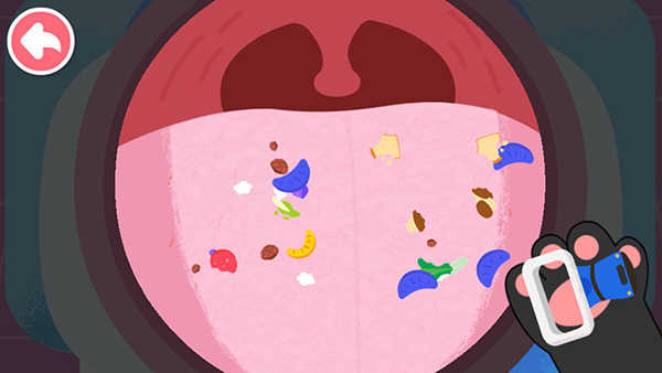4、清理好口腔之后,宝宝需要拿起扫描仪,扫描小动物坏掉的牙齿。