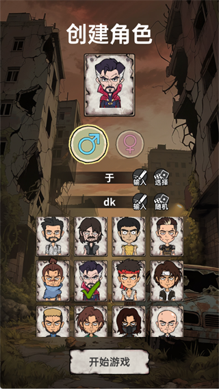 1、打开末日大本营模拟游戏后,先创建角色,确认形象与属性后点击【开始游戏】,正式踏入末世世界。