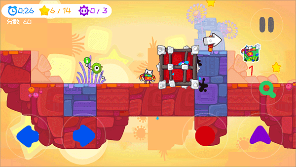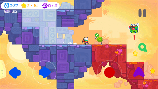 游戏能够带给玩家卡通欢乐趣味,玩家需要控制着一只可爱的带有彩色围巾的角色在奇幻的世界中冒险