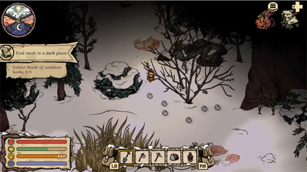 进入该区域后,经过左侧的贝壳,然后沿着路径向西北走,直到你在屏幕底部看到一个废弃背包。里面藏有一批常见草药。拿着这个,然后准备继续前进。