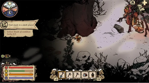 你下一个来自Gnawtusk的请求是“在黑暗之地寻找藏匿物”。这批草药藏匿处藏在一个“诡异”的地方,用一块“巫石”掩盖,啮齿牙描述那只是一块带洞的石头。正如Gnawtusk所说,这个藏匿点藏在Shadow Pines的一个黑暗角落,所以你需要先装备你的灯笼,才能做其他事情。