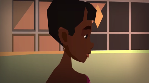 4、第四个场景为室内视角,展示了角色的近景形象,背景是带有几何装饰的墙面,这类画面通常用于推进剧情或呈现角色状态。