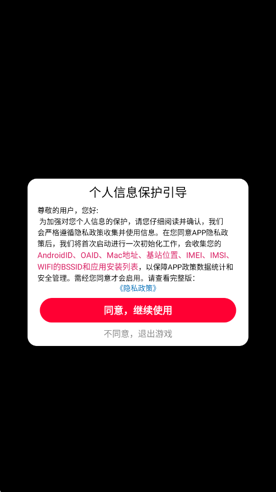 1、进入游戏之后首先需要同意隐私政策。