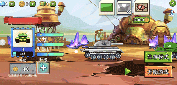 2、这里有多种造型独特的坦克供你解锁,可选心仪坦克参战,且每关成功后可获战利品,用于升级装备;