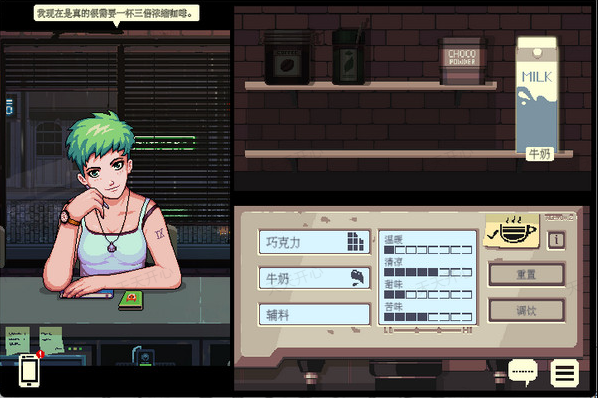 2、亲手改变故事的分支。改变情节走向的不是对话选项,而是玩家为顾客冲调的暖饮。