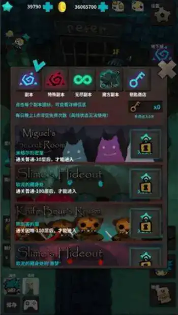 是一款画风精美、角色养成的地牢探险类游戏,在游戏中玩家将扮演主角阿伦,作为一个喜爱冒险的战士,将带你领略各种神秘的副本,并且你将会获得丰厚的装备、金币报酬。你会在游戏见到各种怪物和Boss,当你通关的层数越高,可见到更强力的怪物,就会越丰富,怪物不断地更换组合,阻挡勇者的脚步。你将获得武器、防具、饰品、技能,帮助阿伦逐步成长为真正的勇士。
