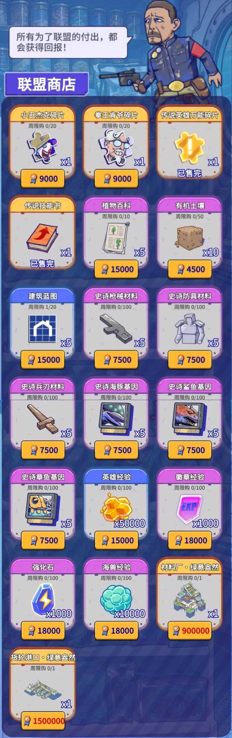 联盟商店内的物资极其丰厚,每周的传说万能碎片、传说技能书优先兑换,然后就可以将功勋攒着等后面兑换商店最下方的两款皮肤了,这两款皮肤单买都是68一个的,能用功勋白嫖很香;