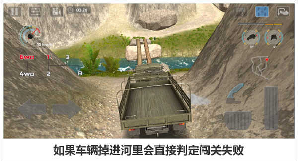 在跨越障碍物的时候容易被石头磕碰底盘,最好的方法是在跨越复杂地形的时挂至一挡低速通过;将视角转到能看见车辆底盘的角度,时刻调整档位和车速避免因为底盘磕碰造成的车辆损坏。另外本关卡时间设置充裕,司机们可以安心的驾驶车辆噢~