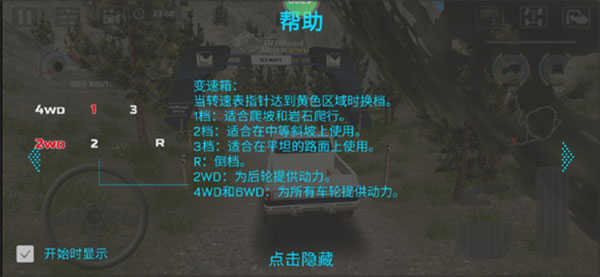 1、各位司机朋友们大家好!欢迎来到越野驾校学习,本期将会带着大家学习如何驾驶越野以及如何根据不同路况来判断档位。每一个关卡,允许最大碰撞次数为5次,超过5次游戏失败,因此在面对复杂路段时尽量控制车速,不宜过快,以免发生碰撞。在《极限越野驾驶大师篇》中,大部分越野车都有四驱模式(4WD)和二驱模式(2WD),少数车辆有六驱模式 (6WD) 可供选择,游戏开局建议都调整成四驱模式,有助于车辆在崎岖地形上保持抓地力,实现脱困。