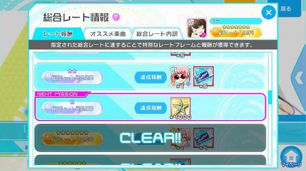 总评分是根据前30首通关歌曲的个人评分计算出来的(歌曲难度+2.0为最高分)。根据您达到的速度,您可以获得相当可观的奖励,所以一定要检查一下!