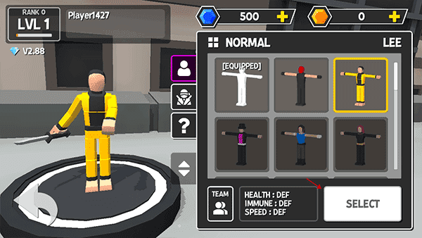 4、你可以编辑各种角色皮肤,有些皮肤是需要解锁的,点击select就可以使用