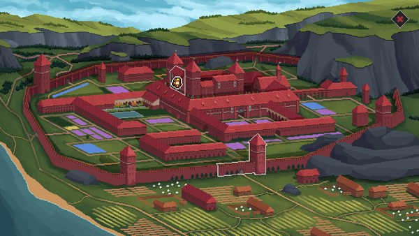 走到房间边缘就可以来到城市,如果看到某个区域有蓝色或者绿色标识,就意味着这里有事件发生,进去之后和NPC对话即可。进入大地图界面(随着游戏的推进而解锁),点击一个地点上面的放大镜图标,再选择一个手下就可以进行探索了。探索地点会给你带来一些金币和物资,也可以触发新的事件。