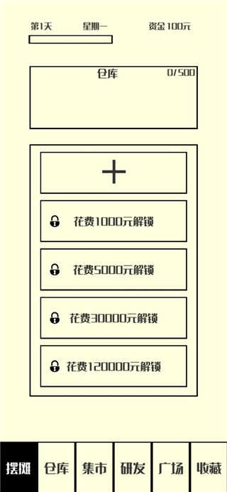 2、点击摆摊,这里玩家可以新增摆摊位,还可以解锁;