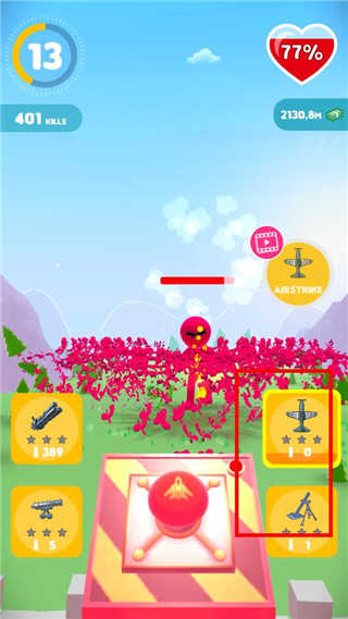 人群防御是一款非常刺激的射击塔防的手游,玩家将会面对成群的敌人,操控自己的大炮,快速上膛,把握好射击精度,瞄准目标,将所有的敌人消灭干净,以此挡住敌人的进攻,把守住自己的城池。游戏中的关卡非常丰富,关卡越到后面越难,每个关卡都有一个boss,玩家打完大boss之后就可以升级自己的武器大炮和城堡,用更加强力武器来清除围攻的敌军。还需用你的策略建造塔防,通过指尖灵活的操控大炮进行消灭击败敌人的入侵。