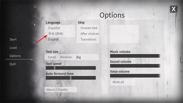 1、开始界面点击下方Options--中文(简体)