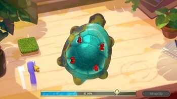 你将在第五关清理一只,但这不是普通的,实际上它还是一个陶笛。你手上还有海绵和牙刷,所以先用海绵清洁龟的上下部位。清理时,你会注意到顶部和底部都有孔洞,用工具经过时会弹出一些音符。暂时忽略那些洞,继续刷洗龟。用海绵把大部分污垢洗掉后,就可以用牙刷把上面的脏东西清理掉。
