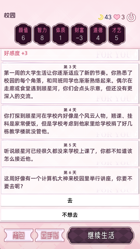 6、时不时也会弹出一些选项,这些选项会影响之后的剧情,从而影响攻略目标的好感度,注意哦!