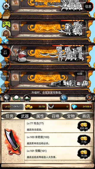 2、在游戏中还可以使用金币为自己的武器进行升级。