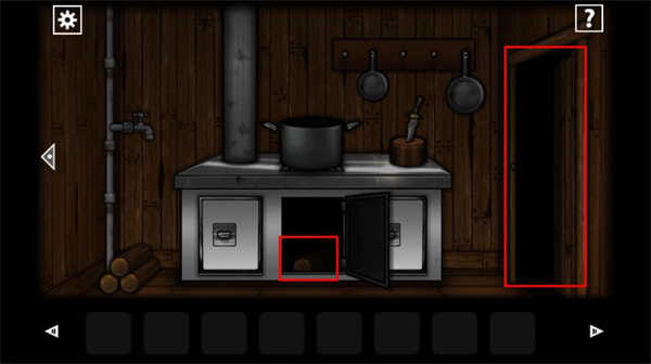 2、出去来到厨房位置在左下角拿到木柴,右上方砧板上面拿到刀。