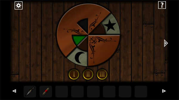 8、来到有这旋转转盘房间当中点击墙上转盘,如图进行调整,调整成图上的图案,之后们后面的门就可以打开了。