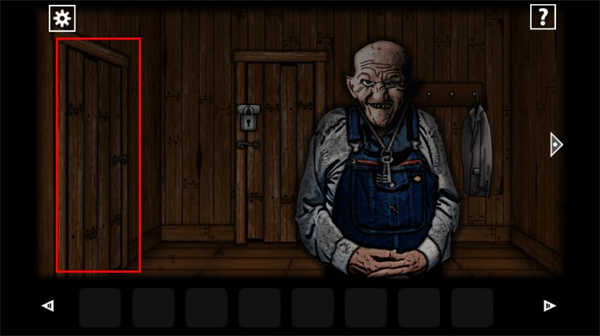 5、来到外面的区域在这个地方点击门想要出去的话就会有一个老头来阻挡我们,接着点击左边的门进入。