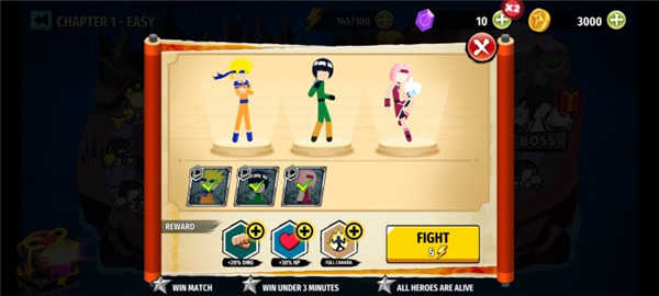 火柴人忍者3v3竞技场是一款火柴人主题的横版格斗游戏。游戏采用了非常经典的街机格斗玩法,玩家所操控的角色都来自于“火影忍者”,并且游戏将角色的外观和非常独特的技能都完美的复刻了下来。游戏采用了闯关模式的玩法,玩家可以自由选择角色进行3v3的闯关,打败最终的BOSS,玩家可以随意挑选三名忍者组建自己的三人小队进行战斗,您需要做的就是躲避、跳跃、为您的查克拉提供动力,释放大招击败对手的所有忍者。