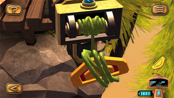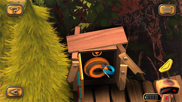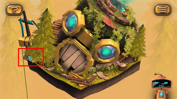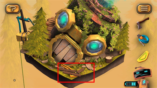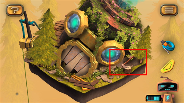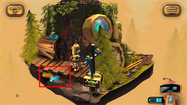 1、在图左下角发现一个电池,点击收集后,机器人增加电量