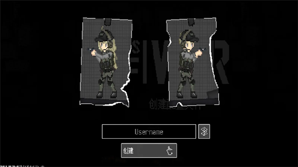 1.游戏启动后,进入角色创建界面,玩家可选择两个不同外观的像素风格角色(一男一女),输入自定义用户名,并点击“创建”按钮开始游戏。