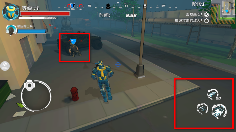 3.移动控制:左侧虚拟摇杆实现灵活走位与转向,帮助玩家在复杂战场中规避敌人火力,抢占有利位置展开攻势。
